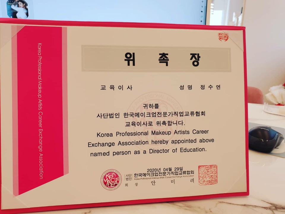 "한국메이크업전문가직업교류협회"의 교육이사로 위촉되셨습니다!