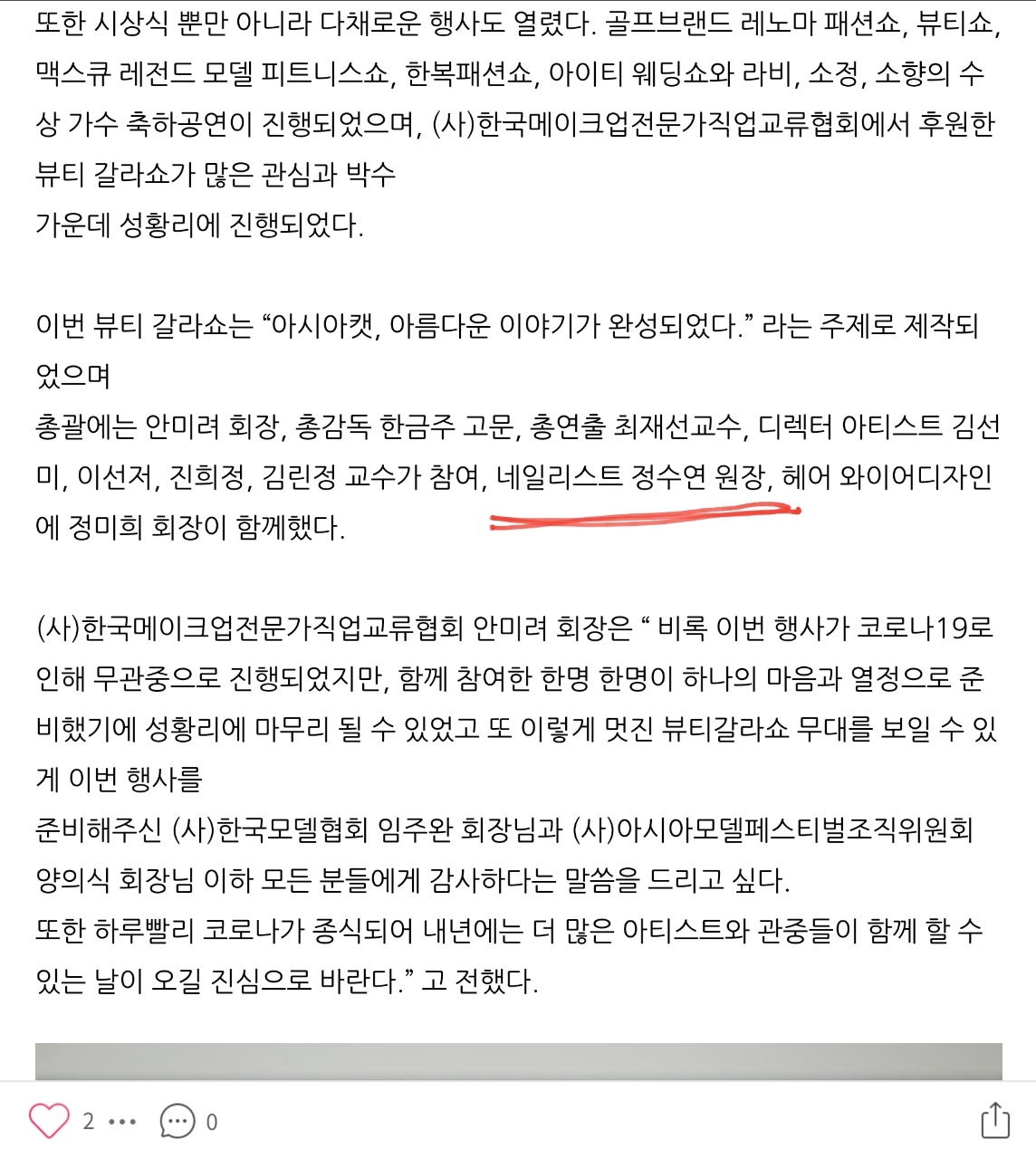 해아카데미 원장님 갈라쇼 네일 뉴스기사~ 2021-07-11